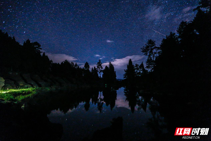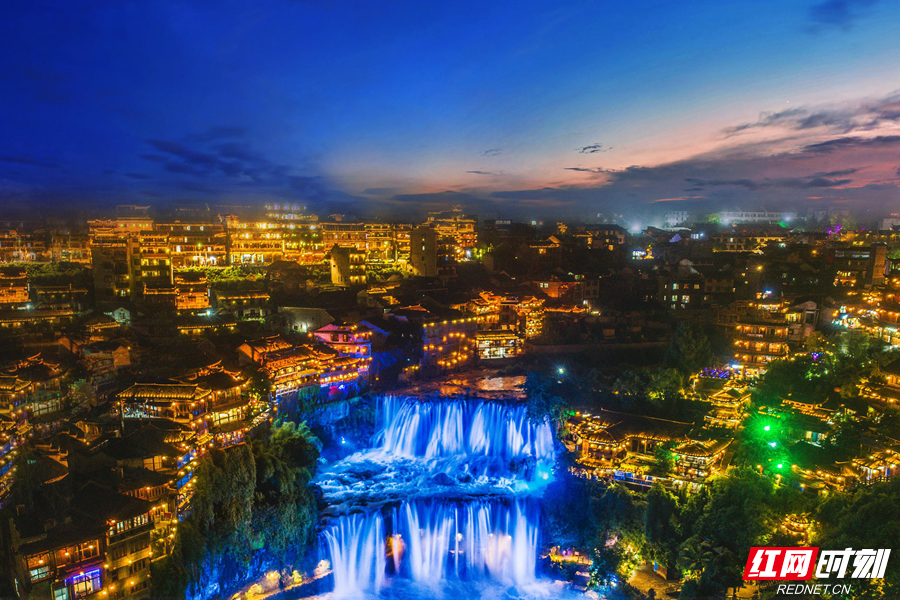 银河洒落芙蓉镇,飞瀑垂帘气势雄。