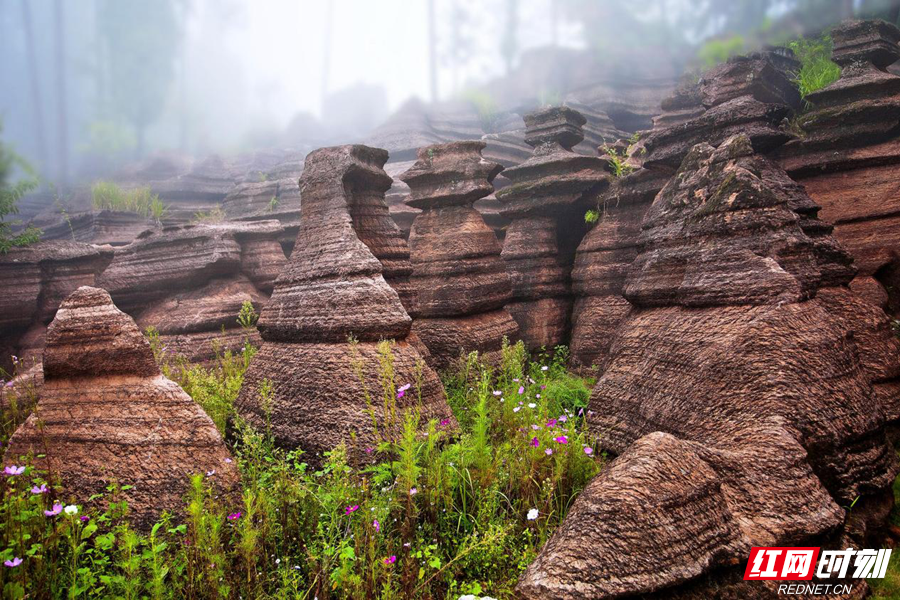 山观武陵世间尽,别开洞天红石林。