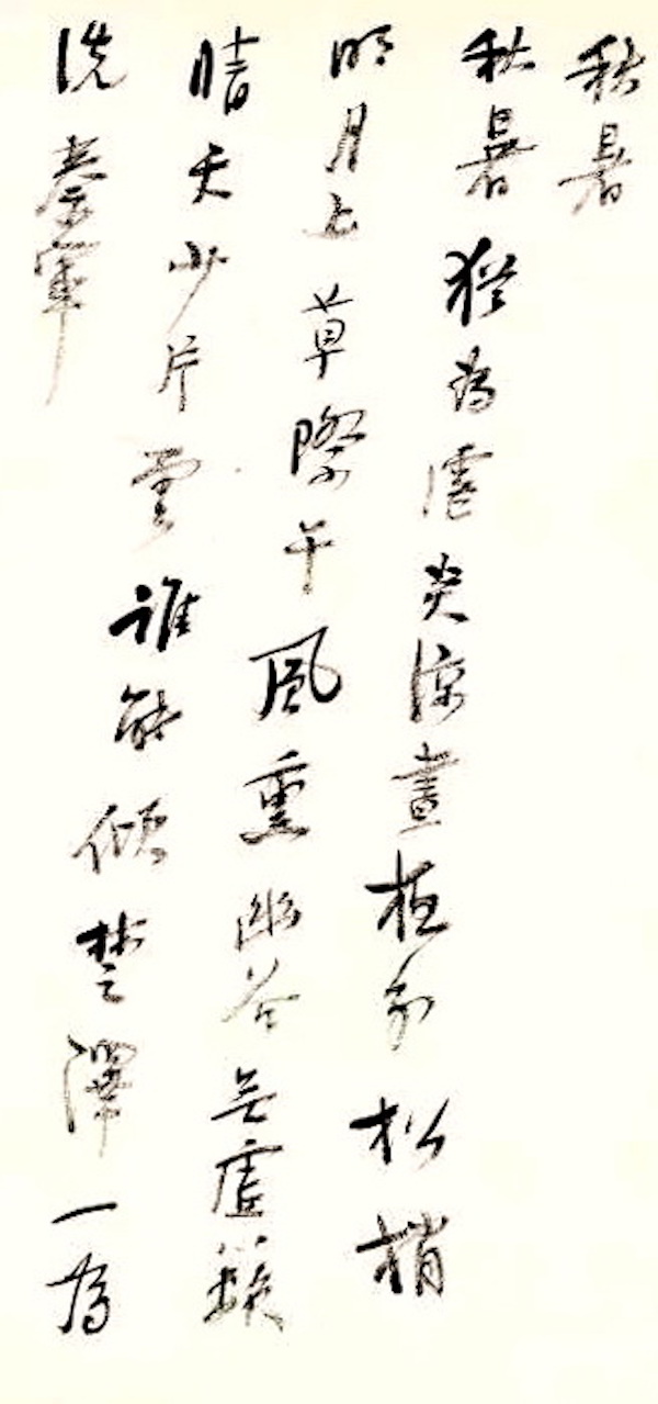 到了马一浮这一代,可以说是“最后的文人”,对他本人而言,也是“最后的儒家”——马和梁漱溟、熊十力并称为“现代儒家三圣”。马一浮《秋署》诗稿偶然得见,拍照留存。其中写道:“秋署犹为虐,炎凉昼横分。松梢明月上,草际干风曛。幽谷无虚赖,晴天少片云。谁能倾楚泽,一为洗秦军?”此诗有唐人境界,见证大家手笔。马一浮学书早年从唐碑入手,尤喜欧阳父子,二十岁后遍临魏晋南北朝法书,植根于钟王诸帖,最终化裁一家,兼用晋韵唐法,与此同时,取北派之雄杰以充实筋骨,兼得南宗逸丽温润之韵致,碑帖交融,笔画俊迈秀、清稚高古,结体坚紧,取势侧歌而险劲,自成一格。