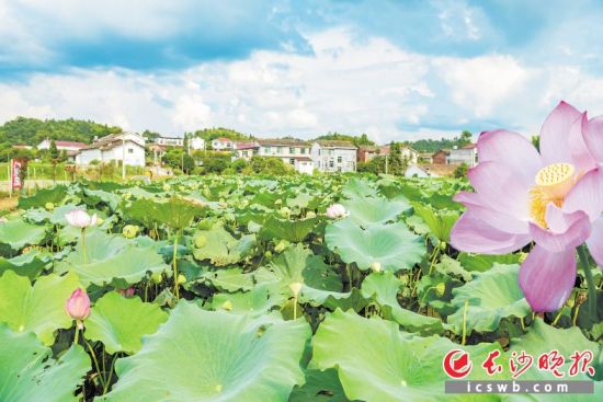 富家湾屋场荷花博览园,种有几十个品种的荷花,园里配套设施完善。均为长沙晚报全媒体记者 陈飞 摄