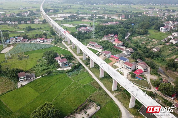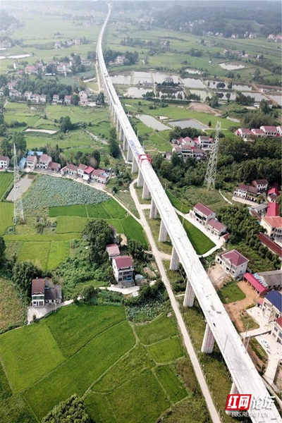 在益阳市资阳区新桥河镇五房洲村拍摄的高铁路经过的美丽原野。(摄影:益阳老宁者)