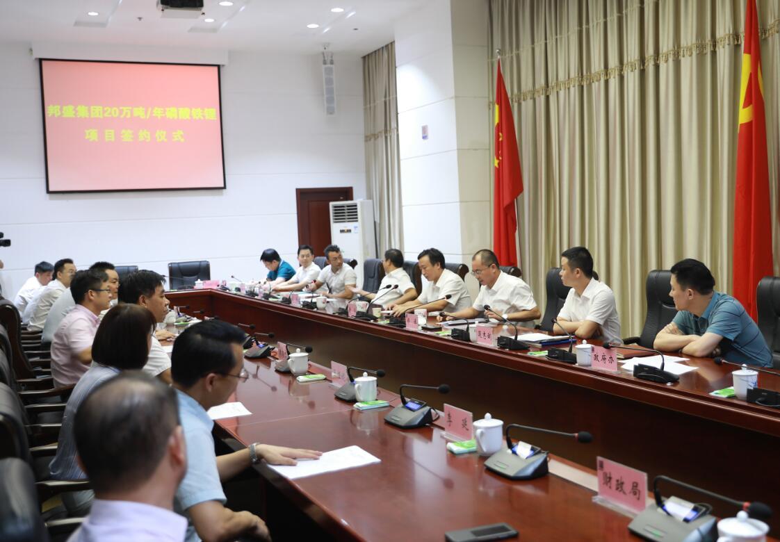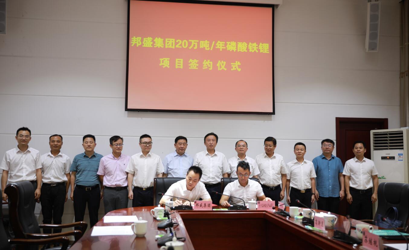 8月30日上午,宁乡高新区与湖南邦盛实业控股集团有限公司磷酸铁锂项目签约仪式隆重举行。宁乡市委副书记、代市长黄滔,市委常委、宁乡高新区党工委书记郑旗,湖南邦盛实业控股集团有限公司董事长刘国忠、首席顾问黄邵明等见证签约。