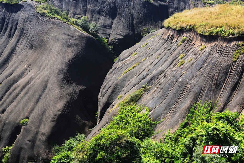 沿江两岩“丹霞翠遥断,岩石架空来”。一路顺江飘流,只见丹峰林立,红岩绿水,怪石幽洞,古木吐翠,竹海茫茫。一年四季绿叶、三季花香,绘成罕见的“四面青山列翠屏”“草木花光尽是春”的奇妙丹霞地貌景观。
