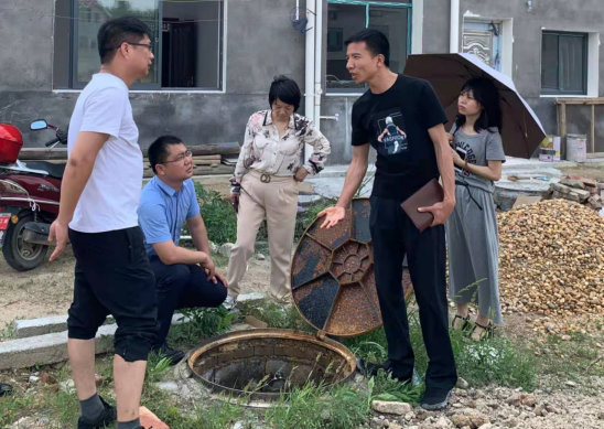 ▲长沙县纪委监委督查北山镇荣合桥安置区污水处理设施进水口污水溢流问题现场