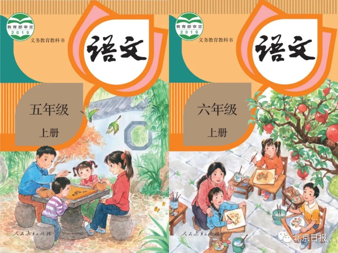 家长们口中的两个封面分别是统编语文教材五年级上册、六年级上册封面。