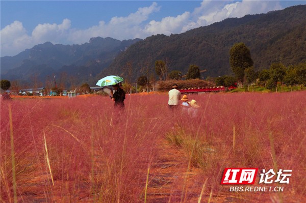 在青山蓝天白云下的映衬下,如烟似霞,如梦如幻,美不胜收,给这个秋天增添了一份别样的浪漫色彩,漫步其间,仿佛徜徉于一片粉红海洋之中,宛如童话般浪漫唯美,随手一拍就是大片,这个秋天,来张家界,邂逅浪漫的“粉色”吧!