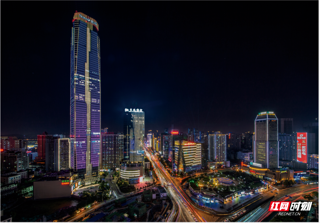 世贸大楼拔地而起,霓虹灯掩映在夜色中,夜经济也在蓬勃发展。