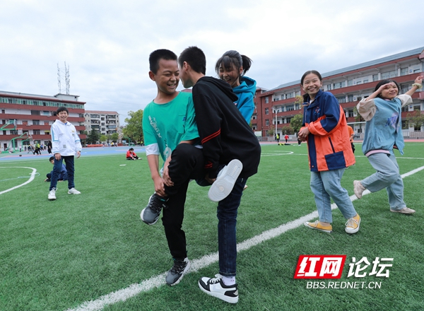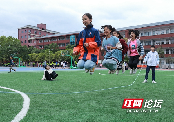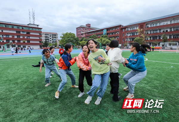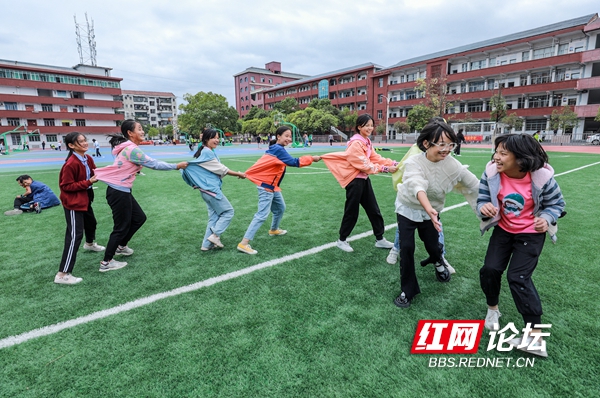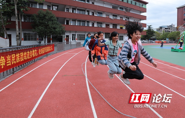 10月11日,麻阳苗族自治县民族中学的学生们在参加“乐享课间”活动。近年,该县在全县中小学开展“快乐课间十分钟运动”活动,让孩子们在课间享受运动的乐趣,加强学校体育,增强学生体质。