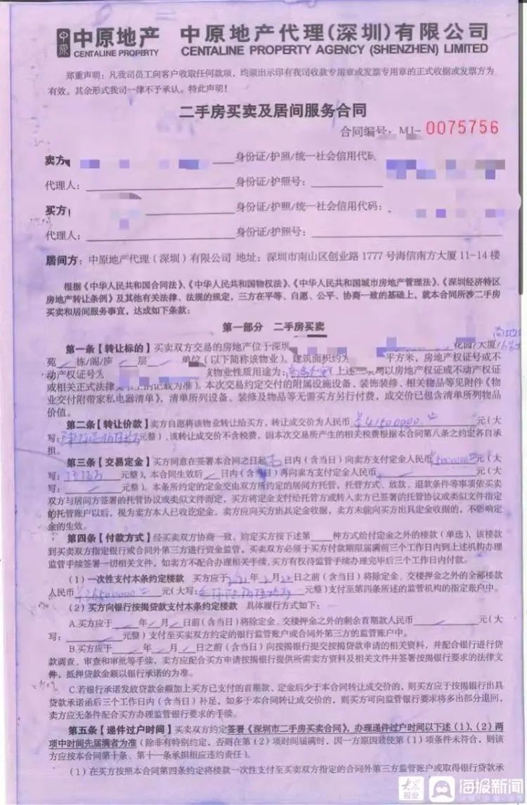 深圳湾1号是深圳的“网红”楼盘。去年12月底,夏女士开始有购房意愿。今年1月份,夏女士前往当地一家中原地产,看上了一套价值5000万元的房子。经过三四次讨价还价,加上中介员工称业主急需用钱,4150万元即可成交,夏女士家人决定购买该套房产。