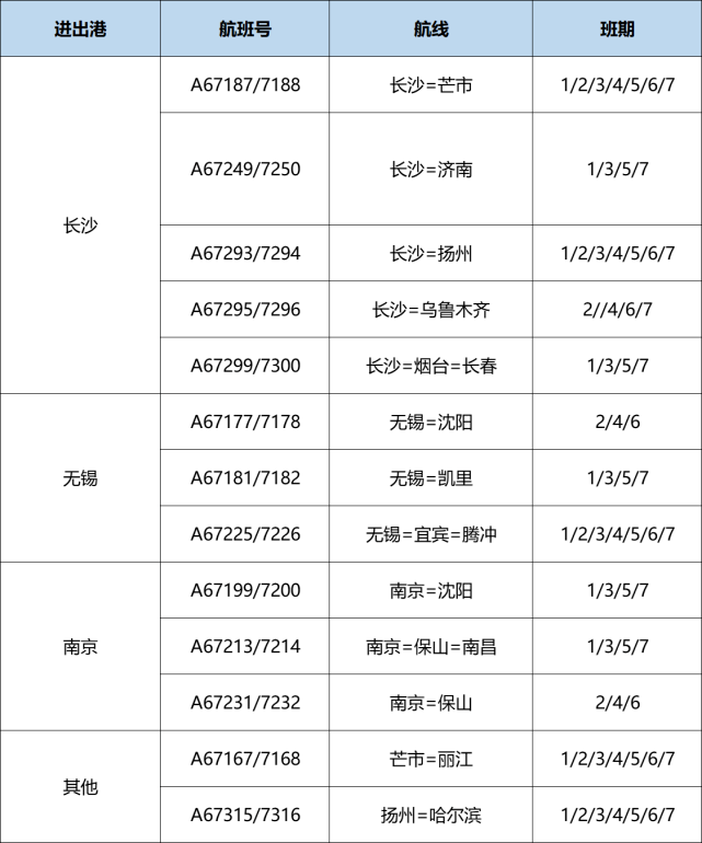 其中长沙至扬州航线每天均有航班