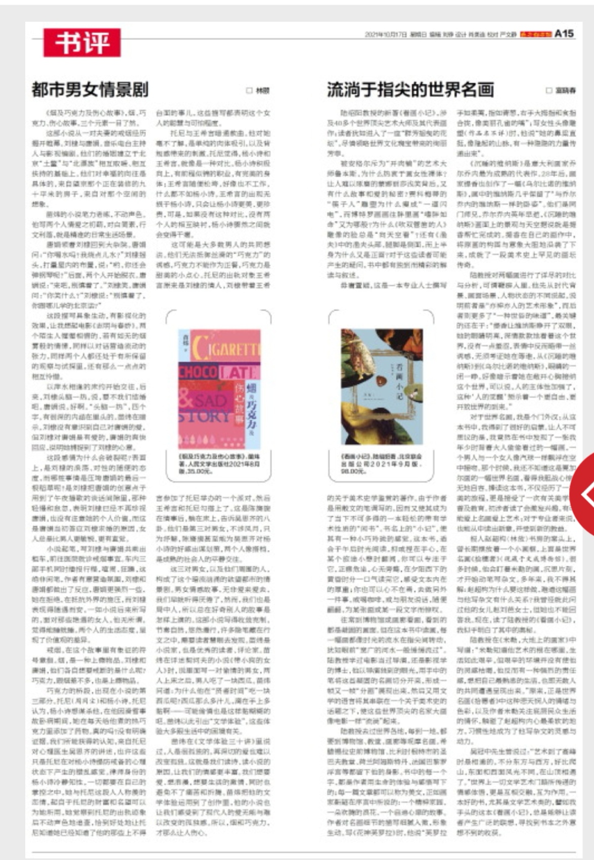 对于世界名画,我是个门外汉;从这本书中,我得到了很好的启蒙。让人不可思议的是,我竟然在书中发现了一张我年少时背着大人偷偷看过的一幅画,一个男人与一个女人像汽球一样飘浮在空中接吻。那个时候,我还不知道这是夏加尔画的一幅世界名画,看得我胆战心惊,无地自容。捧读这本书,不仅经历了一次美的旅程,更是接受了一次有关美学的普及教育。初涉者读了会激发兴趣,有可能爱上名画爱上艺术;对于专业者来说,也能从中读出新意,并受到新的教益。