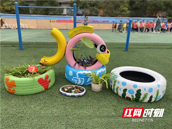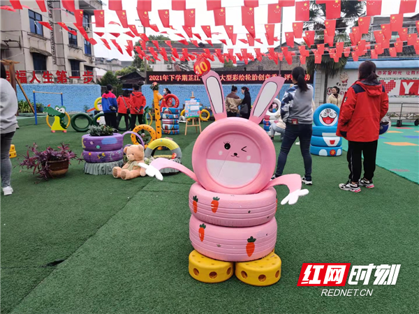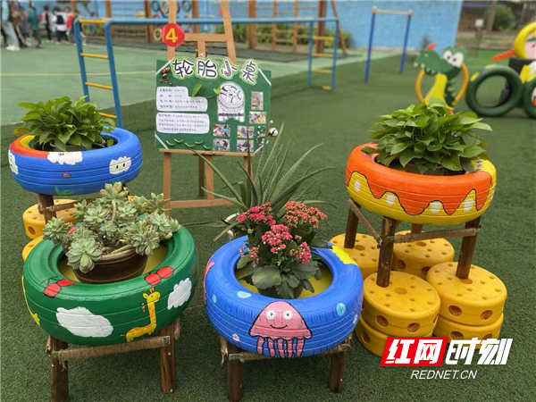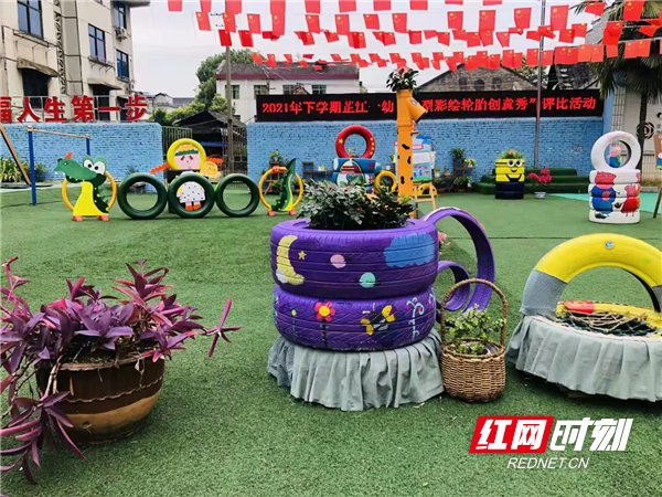 红网时刻怀化10月19日讯(记者 杨伶霞 通讯员 向华 张琳娟)10月18日下午,芷江一幼儿园举办了“环保玩出彩——废旧轮胎创意秀”评比活动。生活中废旧的轮胎,在一群心灵手巧的老师手中华丽变身,成为极具创意的校园装饰作品,由此获得了“新生”。