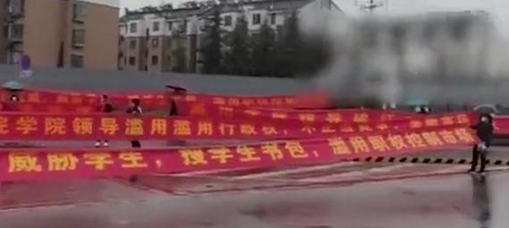 校方的说辞,不能说毫无道理。在视频中,确实可见拉横幅的“壮观”场面,对该校“滥用行政权/职权控制市场”的指责也很犀利。但如果校方想以餐饮企业的“闹事”来转移矛盾,只怕也是徒劳。