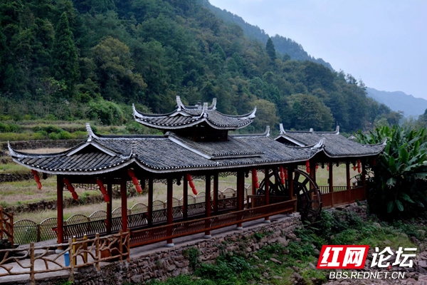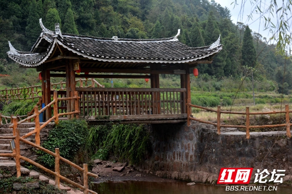 走上石桥举目张望,由远及近都是用木材搭建的房屋,沿山势高低建筑的青瓦白檐边镶嵌着的房屋一层层,特别具有当地建筑风格和特色。从房屋的成色来看有的至少在百年以上,胡家溪至今还保留着古寨风貌。