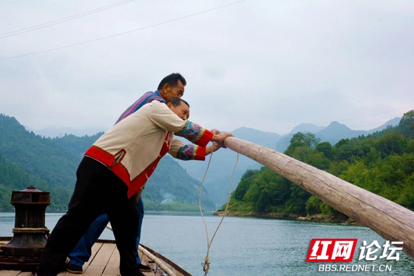 没在江河生活过的人不知道啥叫扬帆、划桨、背纤、摇橹和撑舵。今天让人知道这就是摇橹,使船向前行进。他们一边摇一边喊着船工号子,为的是齐心协力加油干。