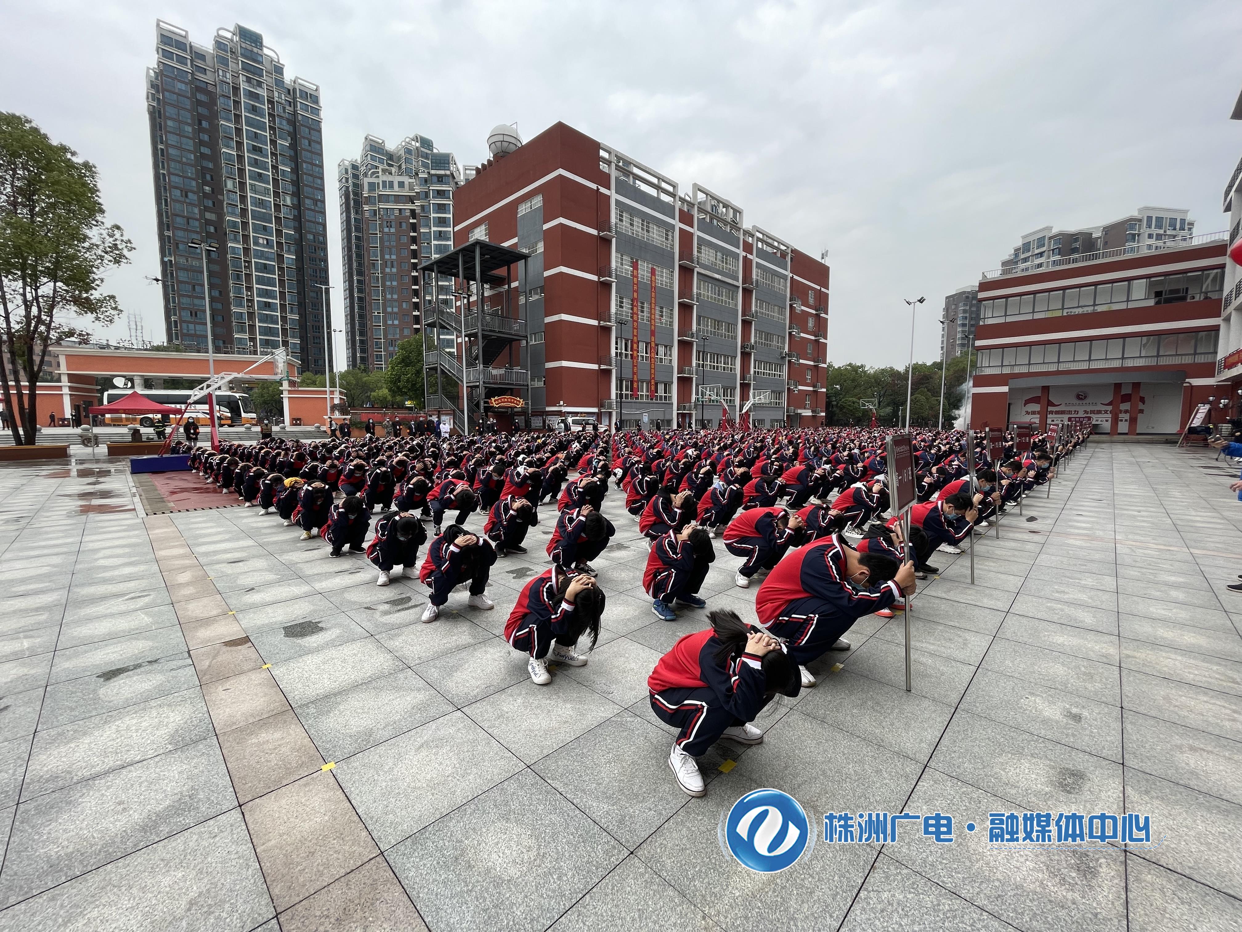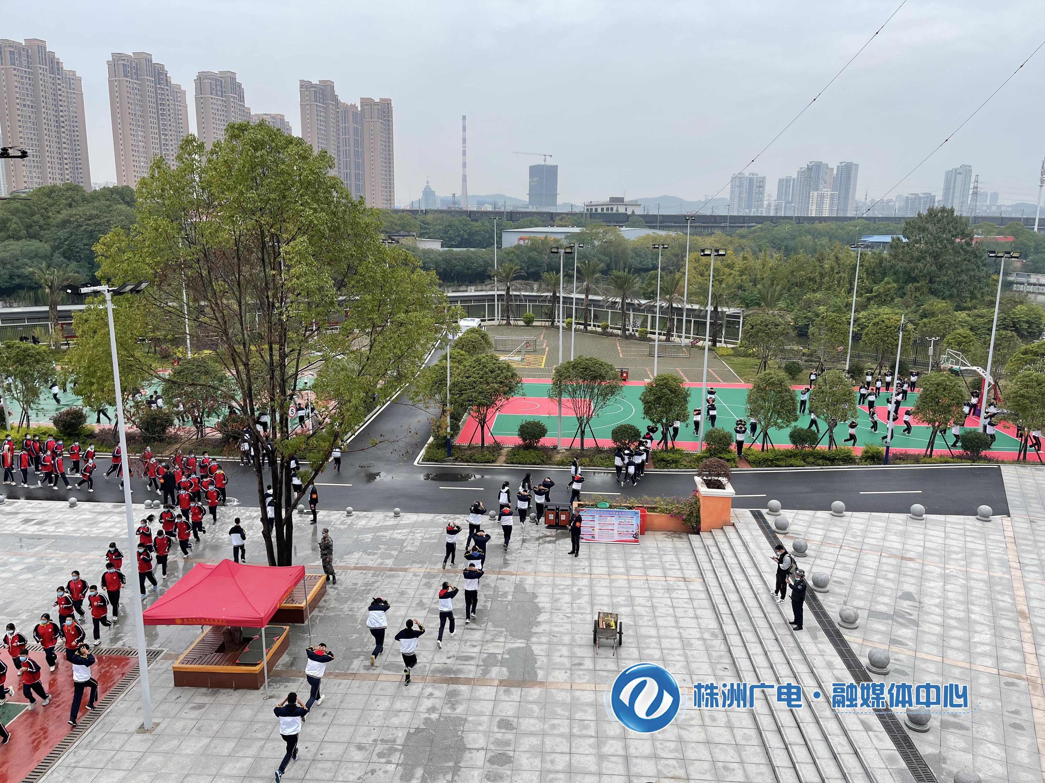今天是湖南省第21个防空警报试鸣日,为增强师生国防观念和防空意识,检验人民防空警报设施的技术性能,上午9点30分,株洲市在株洲北大公学附属学校进行防空警报试鸣和人员疏散隐蔽演练。