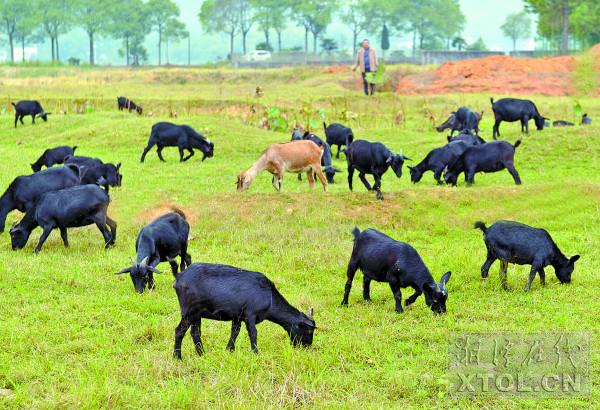 湘潭县中路铺水库周边植被丰富、生态环境优美,周边许多村民利用当地丰富的草资源养殖黑山羊。近年来,羊肉市场价格稳中有升,许多养殖户获利颇丰,纷纷扩大养殖规模,养殖黑山羊成了当地一些村民增收致富的好门路。图为中路铺镇金银村养殖户在放羊。(湘潭日报社全媒体记者陈旭东 摄)
