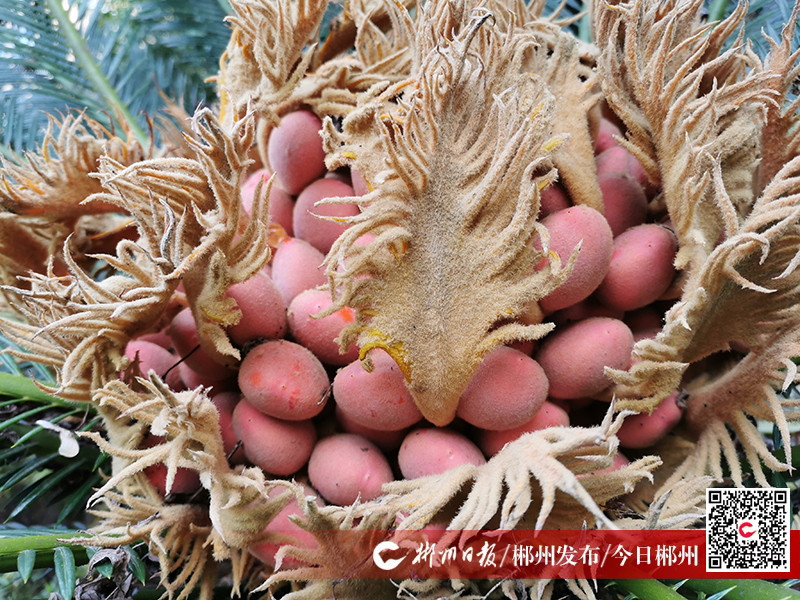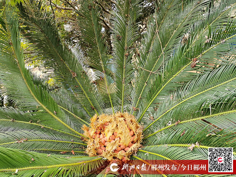 铁树开花并不多见,铁树结果就更为罕见了。11月8日,记者却有幸在湘南幼儿师范高等专科学校目睹了铁树结果的奇观。