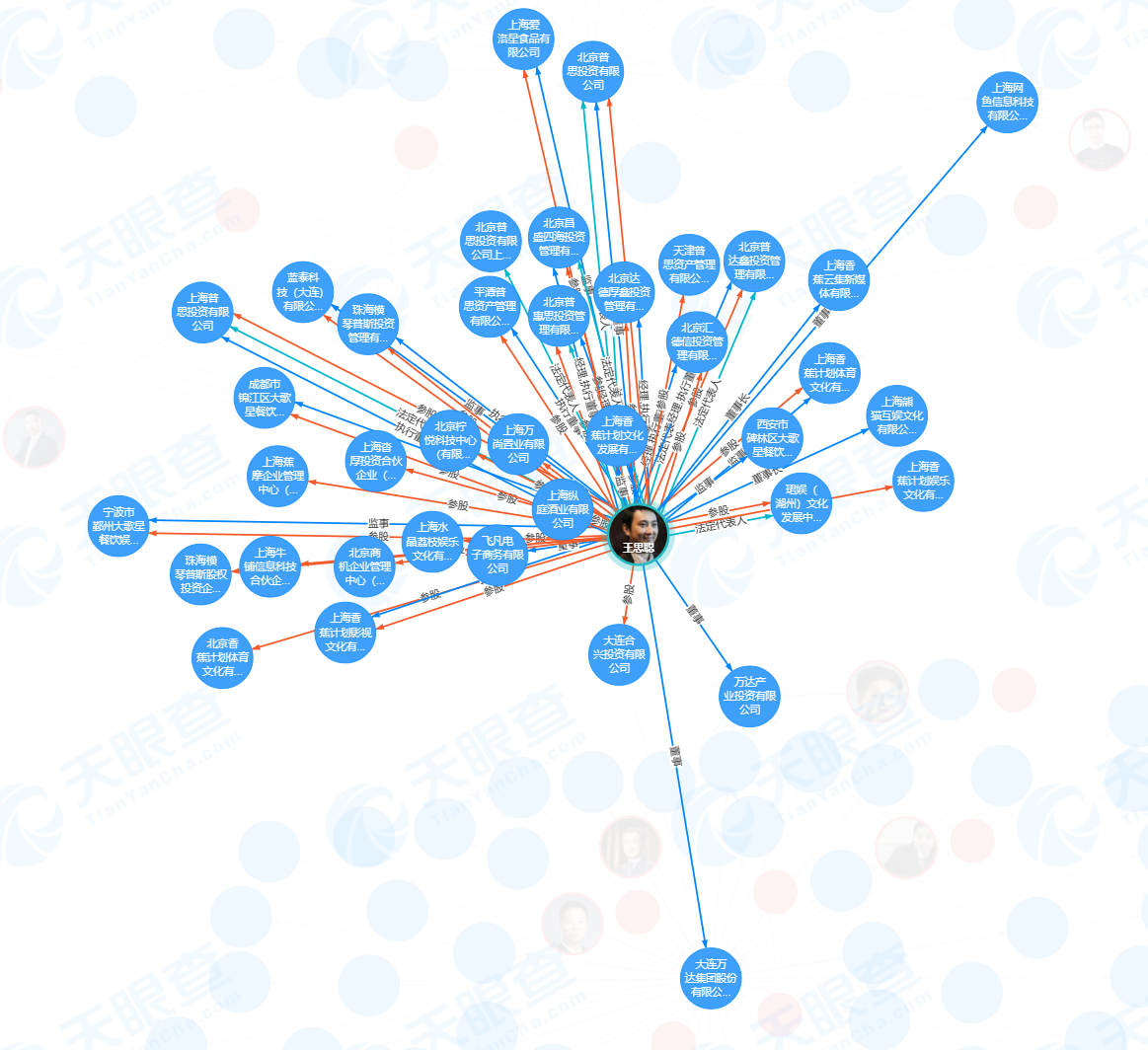 天眼查资料显示,王思聪目前在9家公司担任法定代表人,30家公司担任股东,23家公司担任高管。
