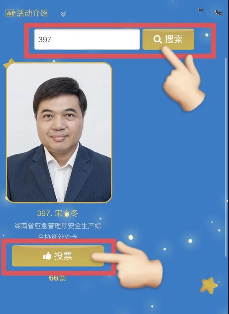 在投票页面输入397 /宋立冬,进行搜索,为他投票!
