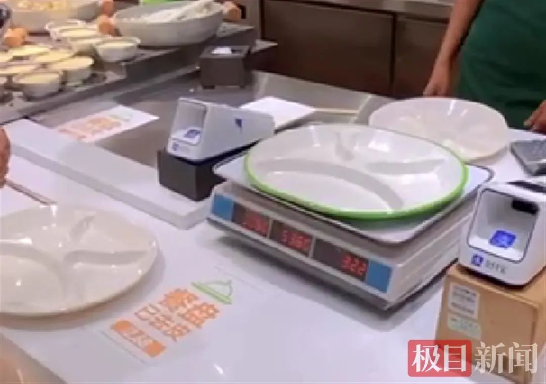 “我们第一次称完了之后,他们把那种绿色的盘子收起来了几天,后来看没事又放出来了。”黄女士告诉记者,就因为这个,她们再次去称重并录像留存证据,并在11月3日将视频发布在了社交平台。