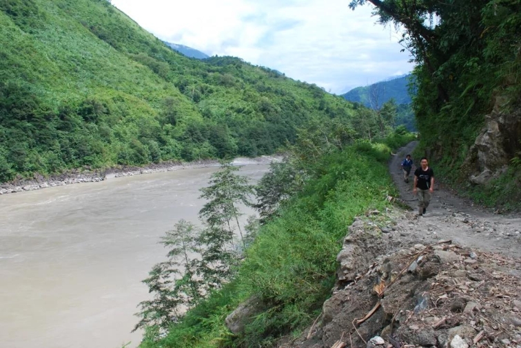 2009年我们去考察的时候,那里的路又一次修通了,所以我们的车就可以开进去。在县城周围考察了两天之后,我们需要继续往南走,去背崩乡方向。结果车子刚开了几公里,两位有30年驾龄的老司机就都不敢开了。他们说“我们不能把你们这些科研人员性命当儿戏,你们还是走路过去吧,我们开不了”。那个路跟车一样宽,左边是绝壁,右边是雅鲁藏布江的深渊。