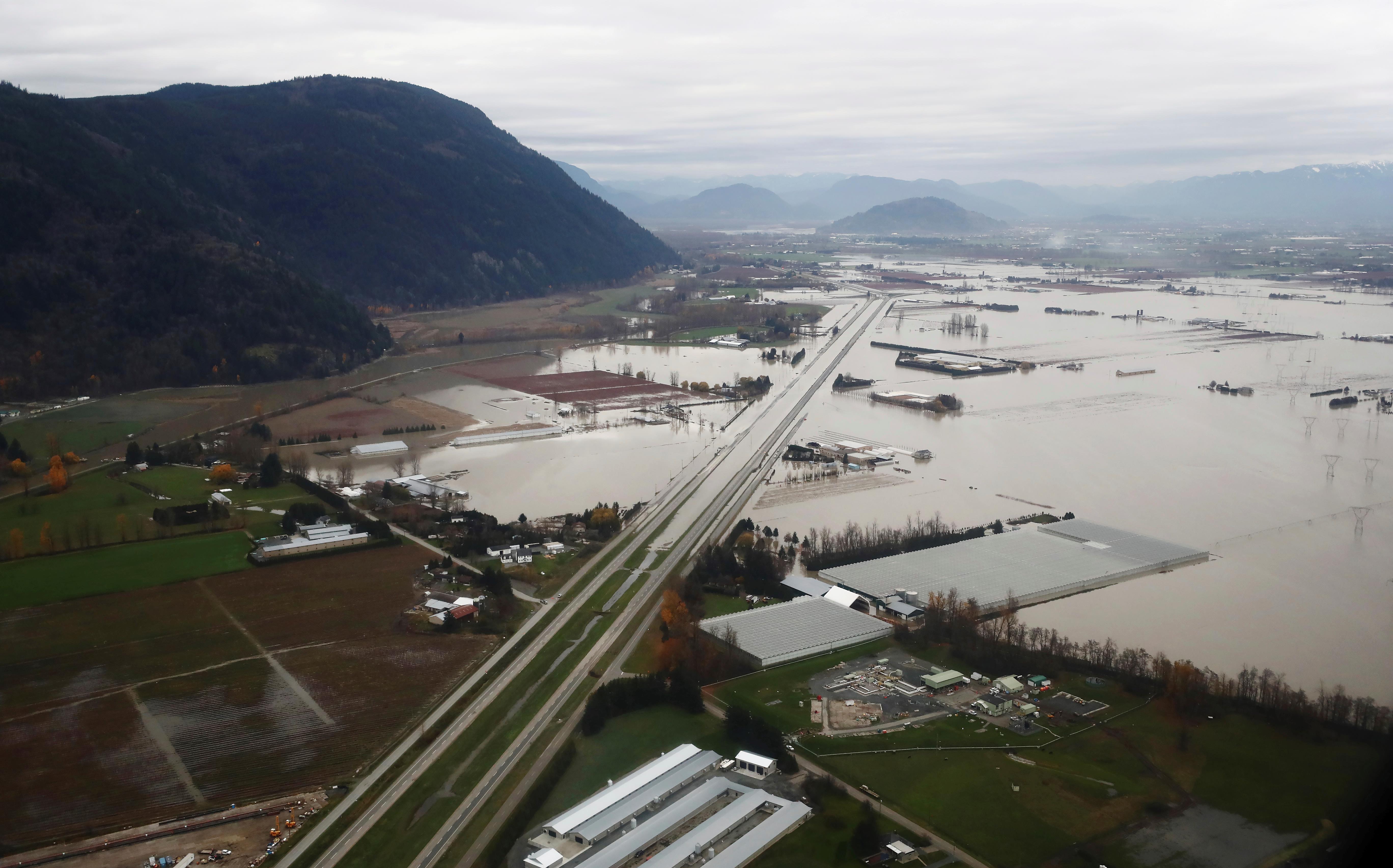 当地时间2021年11月22日,加拿大不列颠哥伦比亚省,当地农场被洪水淹没。连日来,加拿大西部省份出现极端天气状况,该国四大省之一的不列颠哥伦比亚省遭遇了被当地官员称作“500年一遇”的特大洪灾,交通陷入瘫痪,必要民生物资匮乏,将近两万人受困。