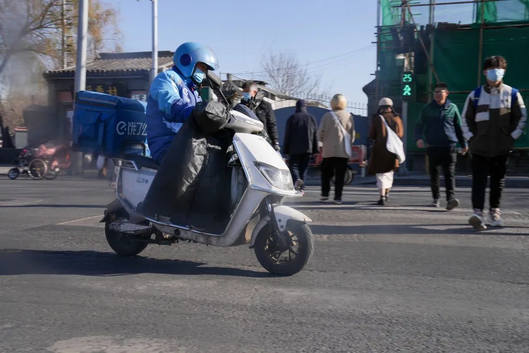 14时,张健还有8个订单待派送。餐盒箱子塞满了,他将外卖挂在车把上、夹在小腿间,边骑车边低头看饭盒有没有被夹坏。即便这样,骑电动车的记者还是追不上他。