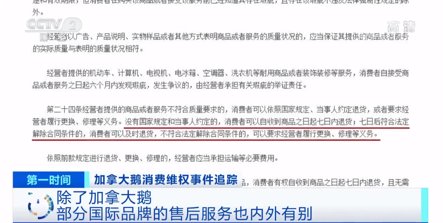 事实上,除了加拿大鹅,记者调查发现,一些被中国消费者追捧的其他国际品牌,在售后服务上,也存在内外有别的现象。
