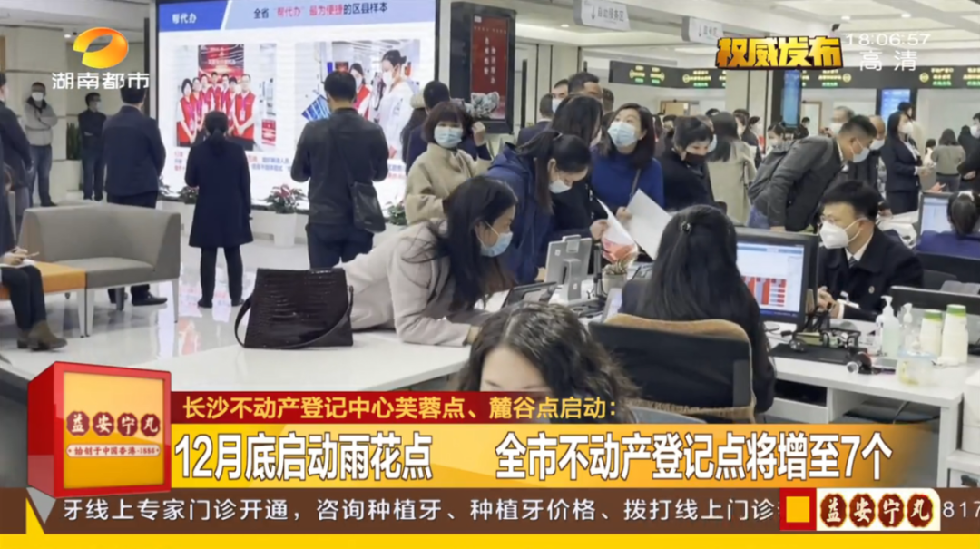 长沙市不动产登记中心雨花点也将于今年12月底正式启动,届时长沙市将全面完成不动产登记业务下沉内五区工作,全市不动产登记点将增至7个,各区企业、百姓都可以就近办理。