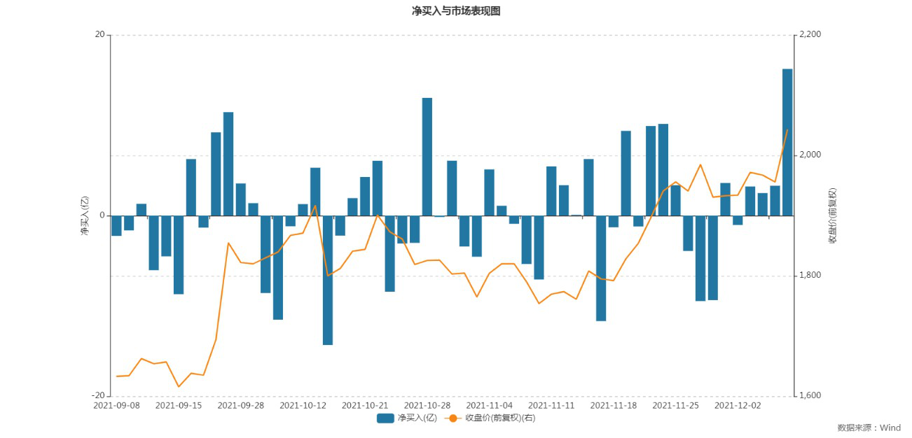而在北向资金方面,该类资金近期对贵州茅台有所青睐,已连续4个交易日净买入该股,且呈现逐日递增的态势,12月8日净买入16.24亿元,居两市首位,近4日累计净买入25.28亿元。