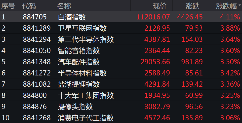 随着贵州茅台股价强势崛起,以白酒为龙头的大消费股再度领涨两市。白酒指数上涨4.05%,位居涨幅榜首位,并创近5个月来新高。