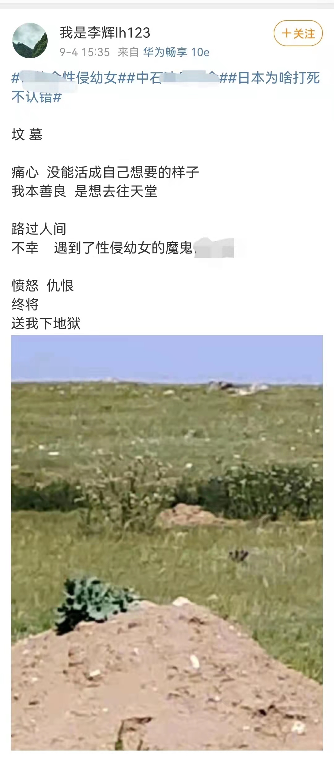 李辉在微博中发了一个亲戚的坟