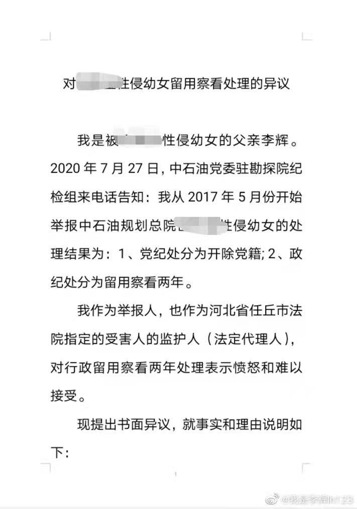 在女儿说出“性侵”之前,李辉就病退了,他曾是华北油田的一名工程师。