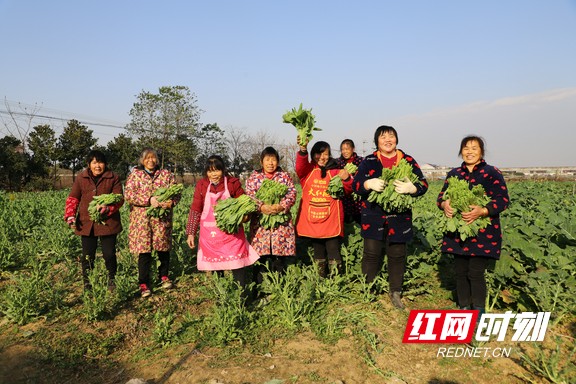 在赫山区衡龙桥镇银桥有机蔬菜合作社种植基地,工人们正忙着采摘新鲜白菜苔。