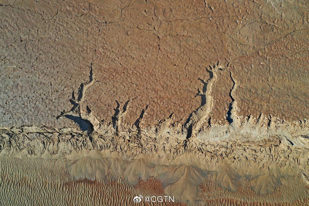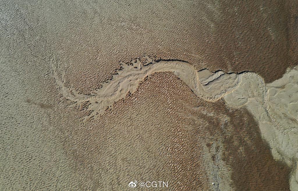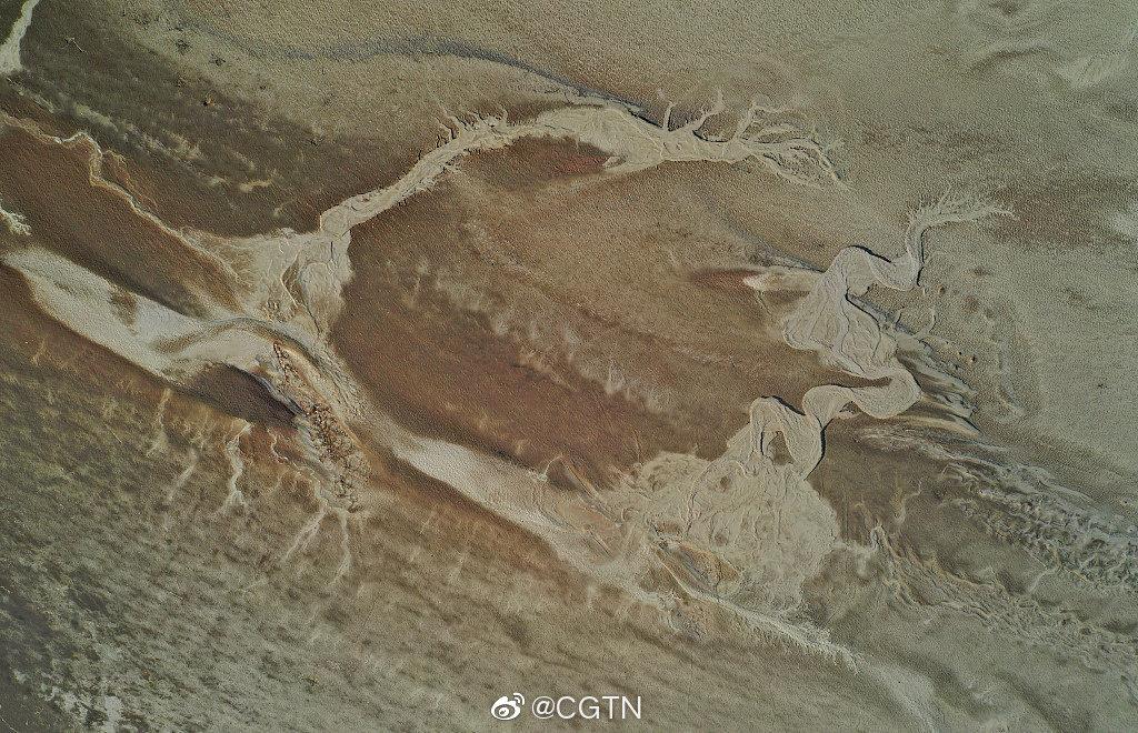 近期,因黄河濮阳段水位下降,黄河滩地现天然“沙画”,景观壮美。在航拍视角下,这些图案有的像浮雕沙画、有的像根雕艺术、有的像水墨山水画,让人产生无限遐想。在这些河床“沙画”中,一条腾飞的巨龙图案格外引人瞩目。