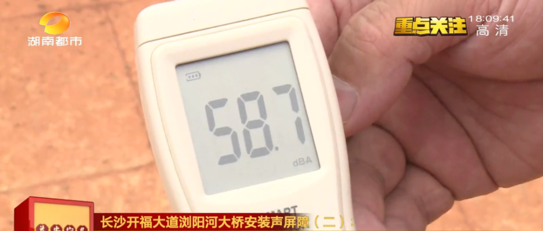 目前,长沙湘府路快改河西段的声屏障已经全线完成安装,在道路上记者测到的噪声有85分贝以上,而在声屏障外,虽然离路面只有不到5米距离,噪音已经降到了60分贝左右。