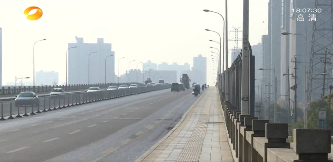 长沙开福大道浏阳河大桥交通繁忙,路面来来往往的车辆不少,但也带来了比较大的路面噪音。