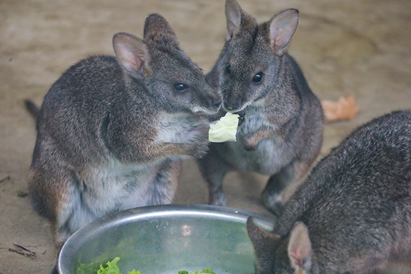 各种袋鼠体型差异较大,个性也不尽相同,比如在喂料时,有的胆大心细,饲养员喂什么好吃的,从很远的地方也能第一时间跑来等候;而有的则胆小谨慎,反复观察确认安全后才开始进食,甚至有些要等饲养员跑开才慢悠悠踱步过来用餐。