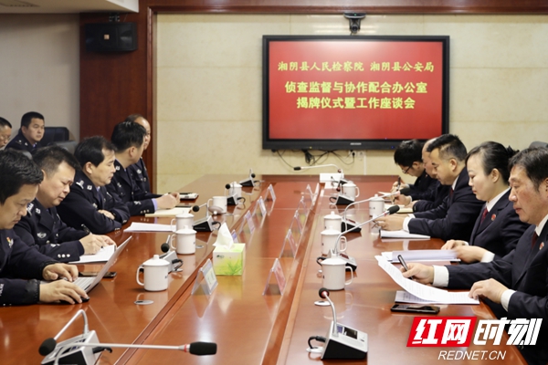 揭牌仪式后,县检察院与县公安局就如何加强侦查监督与协作配合工作召开座谈会,参会人员就如何搞好这项工作交换意见。