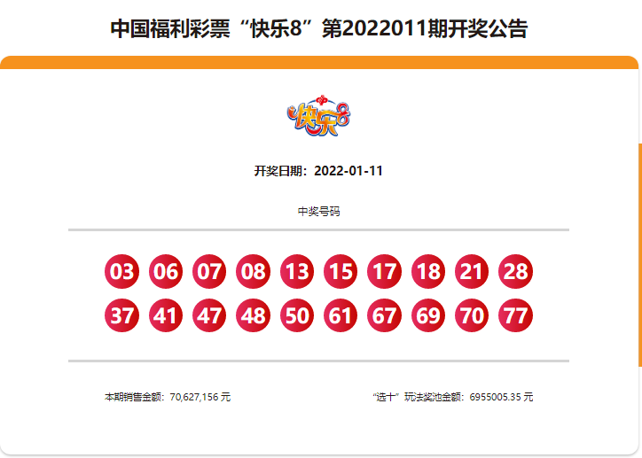 2022年1月11日湖南中国福利彩票开奖信息