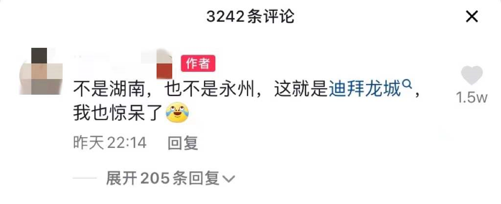 该网友在视频下回复道:“不是湖南,也不是永州,这就是迪拜龙城,我也惊呆了。”