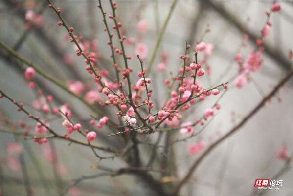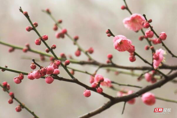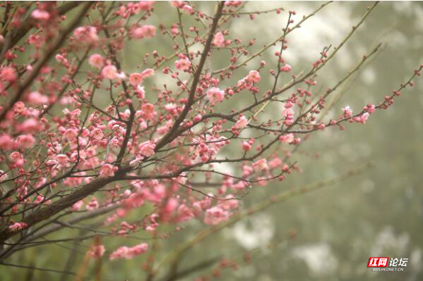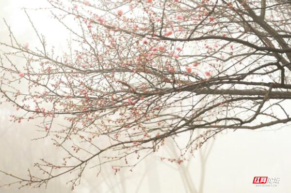 大雾中梅花多姿多彩,各具特色,争奇斗艳,不仅给观光的人们增添出别具一格的景色,而且也为美丽春天的到来扮靓了自己。