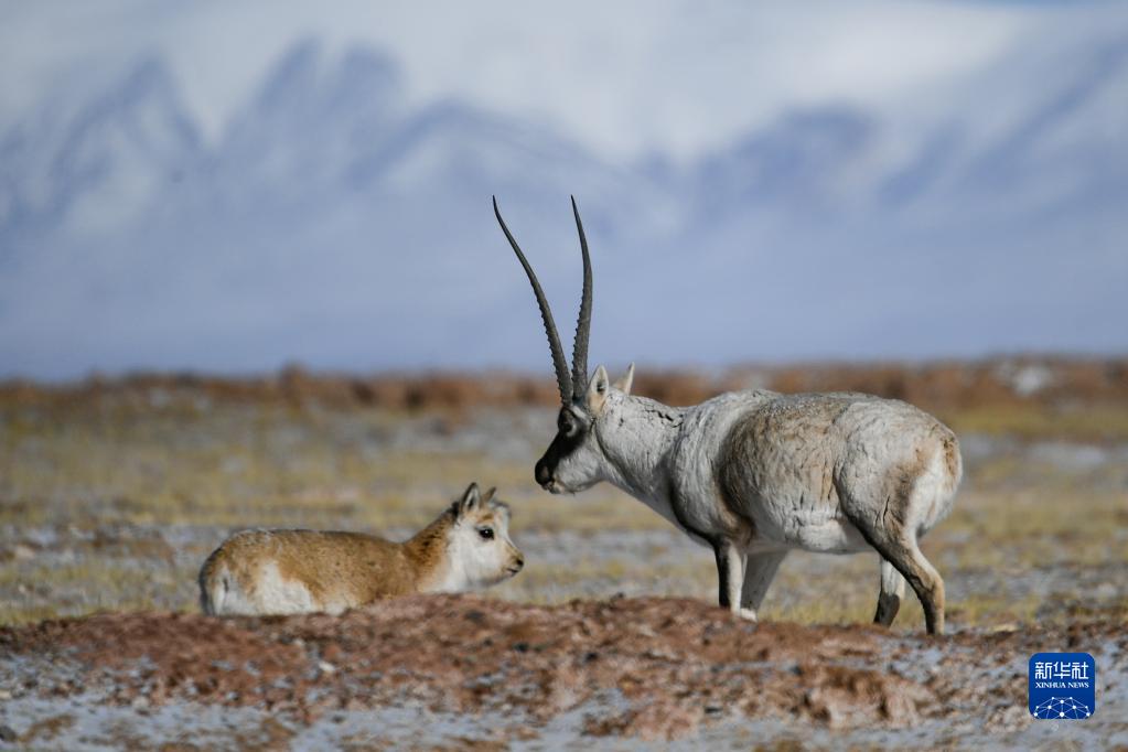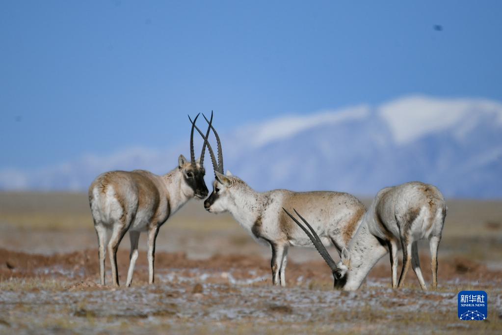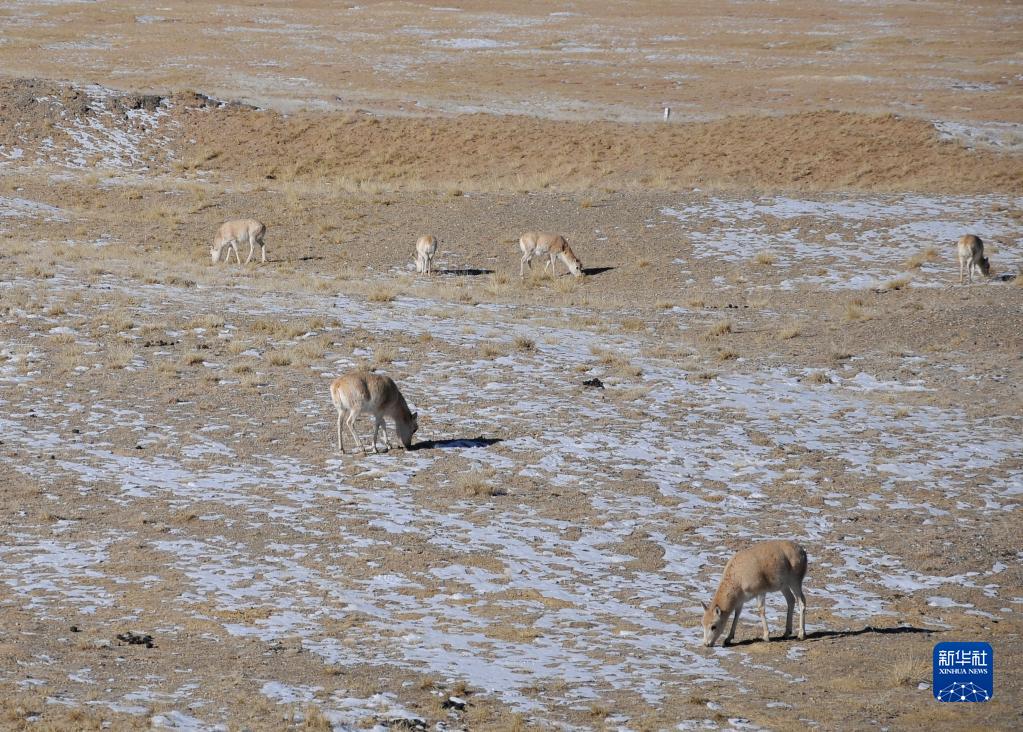 这是在可可西里拍摄的藏羚羊(1月20日摄)。新华社发(潘彬彬 摄)