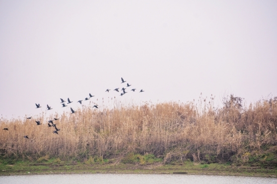 生活在洞庭湖的雁类,以豆雁、小白额雁的数量最多。它们制造的最具标志性的景观就是飞行时形成人字形的队列。它们大多数从遥远的西伯利亚飞来,从大兴安岭入境,经黄河湿地短暂休息后,再飞到洞庭湖里来。
