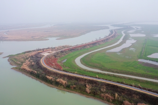 (汉寿青山湖观鸟步道,可零距离亲近候鸟。)