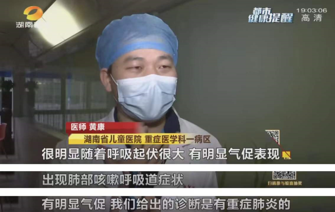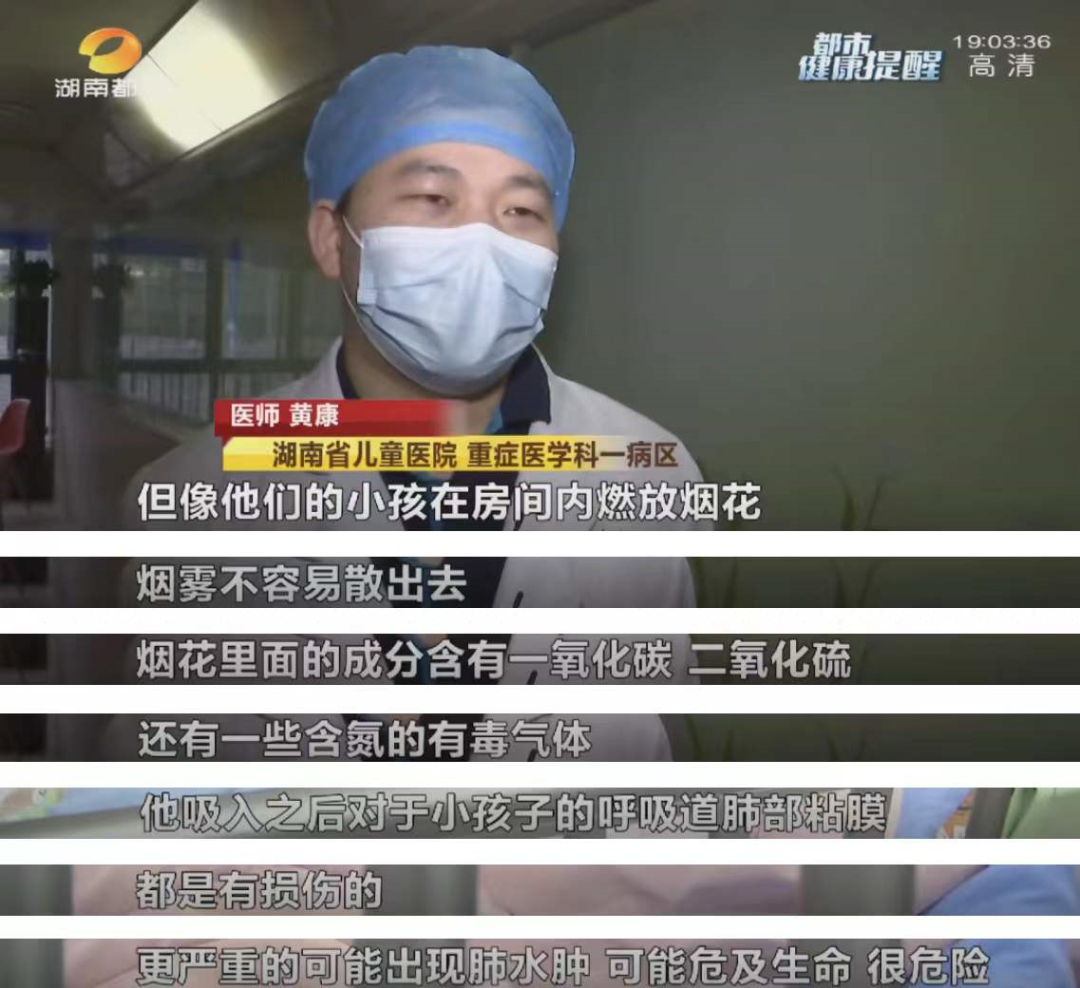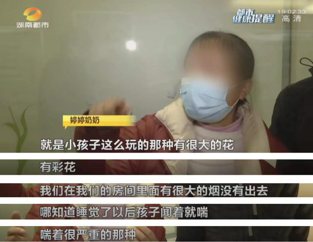 1月16日,因家长在家中堂屋内燃放烟花后,又将门窗紧闭,1岁9个月的湘潭女童婷婷原本就已经因感冒,当晚出现咳嗽加剧的症状,并伴有明显的气促,经诊断为重症肺炎。