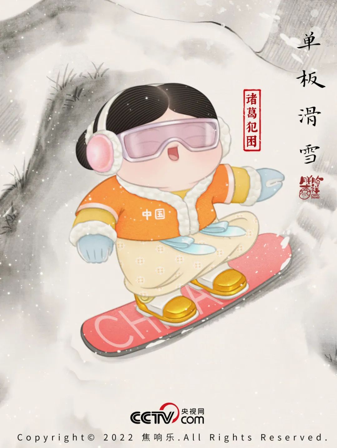 将偏工笔画风和现代冰雪运动结合,