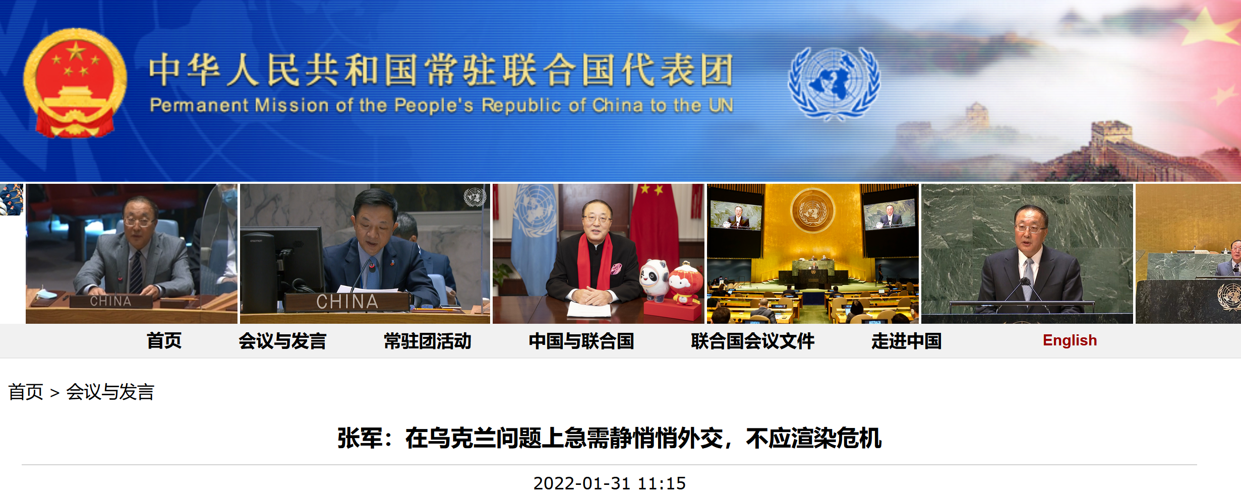 据中国常驻联合国代表团网站1月31日消息,1月31日,联合国安理会应美国要求就当前乌克兰局势举行会议。中国常驻联合国代表张军在会上阐述中方立场,呼吁有关各方保持冷静,加紧开展静悄悄外交努力,不做任何刺激局势紧张、炒作渲染危机的事情。