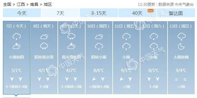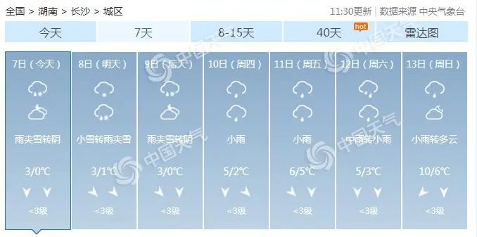 上述地区气温也将持续低迷,今起三天,江南大部地区的最高气温普遍在5℃上下,最低气温更是在冰点上下徘徊,多地遭遇“湿冷魔法”攻击,分分钟被“冻透”。省会级城市中,像长沙、南昌、武汉、杭州等地将开启“阴雨(雪)湿冷周”,最高气温都将在个位数。